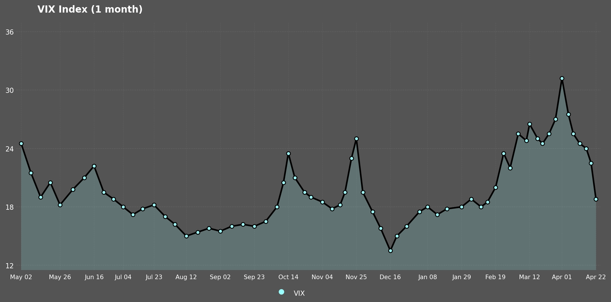 The CBOE Volatility Index (VIX) climbed more than 40% versus Q4 2025, repeatedly breaching the 30 mark in March before retreating to 23.87 on April 3 after a Middle East de-escalation agreement. Readings above 25 generally signal high investor anxiety, and Q1 sat there for most of March.