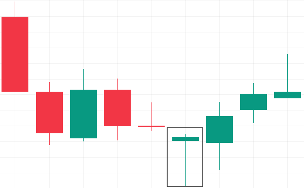 Hammer: The hammer, a bullish sign, has a small body with a long lower wick and usually appears after a downtrend, hinting at a possible reversal. It tells you sellers were active, but buyers stepped in and pushed the price back up.
